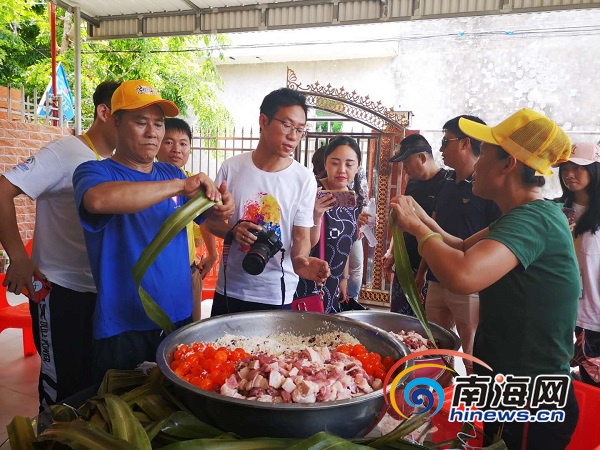 樂東不僅有“銀山”,還有包裝獨特的粽子。卷粽葉、加餡料、綁細(xì)線、包粽子……在鶯歌海鎮(zhèn),村民們在為即將舉辦的媽祖文化節(jié)準(zhǔn)備1000個粽子,讓游客提前感受端午佳節(jié)之樂。與常見的粽子不同,樂東的粽子是用菠蘿葉捆成長條,粽子里有瑤柱、蜜豆、蛋黃和肥瘦相間的豬肉,食材豐富令人垂涎三尺。