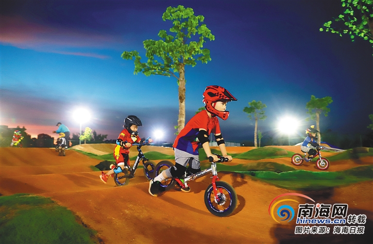 6月7日傍晚,海口某戶外平衡車騎行俱樂部,孩子們正在練習兒童平衡車。海南日報記者 張杰 攝