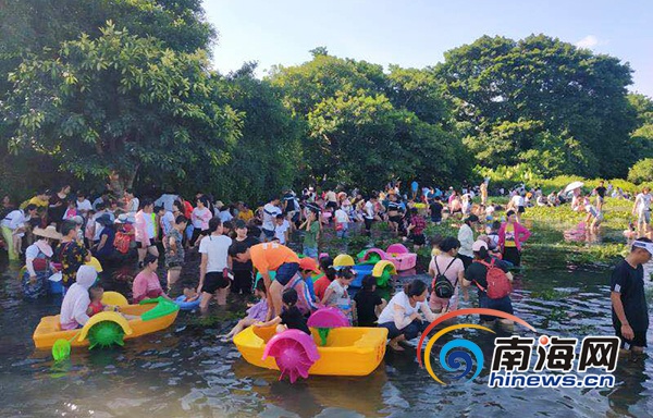 端午期間,眾多游客到定安久溫塘冷泉游玩戲水。定安縣新聞辦公室供圖