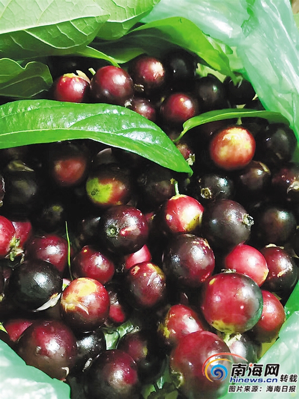 步入陵水黎族自治縣英州鎮(zhèn)走所村,只見(jiàn)特色民房錯(cuò)落有致,房前屋后花木叢生,一派清幽的田園鄉(xiāng)村場(chǎng)景。行走在新修葺的硬化路面上,忽然地上幾顆紅紫色的小果吸引了我們的注意,抬頭一望,只見(jiàn)滿(mǎn)樹(shù)綠葉間,搖曳著成串的小果。
