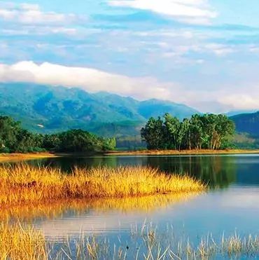 這里湖水清澈,碧波蕩漾,環湖青山起伏,風景如畫。
