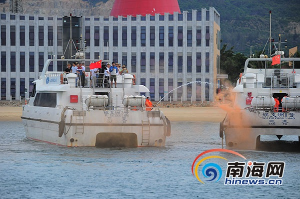 6月13日下午,三亞2019年旅游船舶消防溢油應急演練在三亞蜈支洲島旅游景區舉行。南海網記者 沙曉峰攝