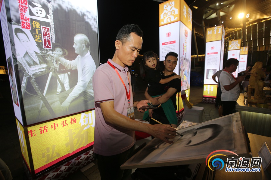 傳統炭畫像工藝傳承人在現場展示技藝。 南海網記者陳望 攝