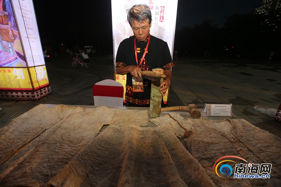 黎族樹皮布制作傳承人在現場展示技藝。 南海網記者陳望 攝
