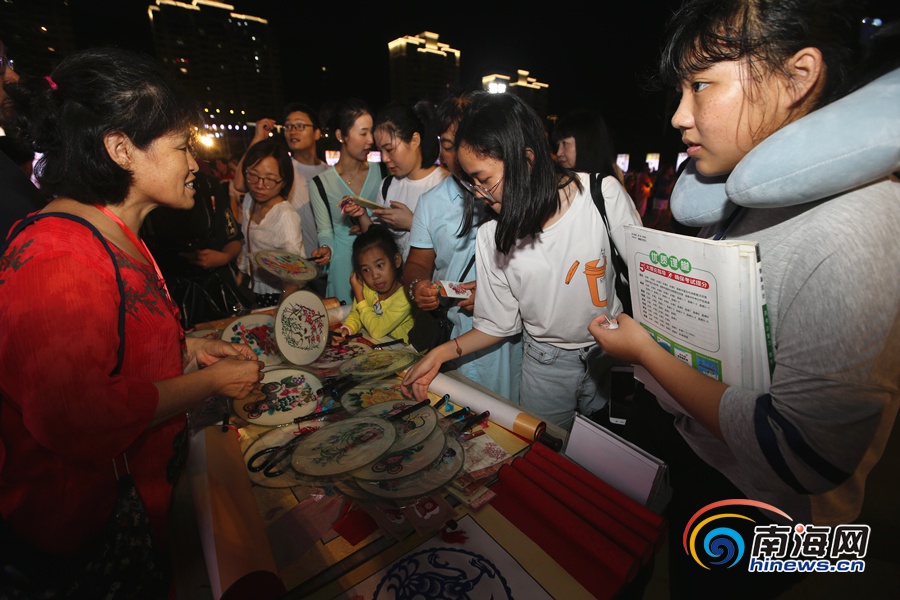 南海網、南海網客戶端海口6月15日消息(南海網記者 陳望)6月15日晚上,2019年“文化和自然遺產日”海南省非遺宣傳展示主場活動在海南文化體育公園舉行。海南民間傳統技藝大展,海南傳統音樂、舞蹈、戲劇展演,海南省非遺研究成果出版物展等活動精彩紛呈,與此同時,現場還免費向大眾派發“非遺口袋書”,向公眾普及非遺保護知識。