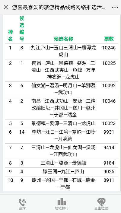 活動自6月7日上線以來,經歷了路線征集、網友投票、數據分析等環節,引起了廣大網友的熱烈反響和積極參與,紛紛為自己心目中最值得一游的線路名單打call。本次活動充分展現了江西旅游線路的多元化優勢、超高人氣與熱度,還發掘了一批未來發展前景明朗的“潛力股”線路。對于擴大江西旅游線路知名度、提升旅游線路影響力、推動全域旅游發展等有著非常重要的意義。