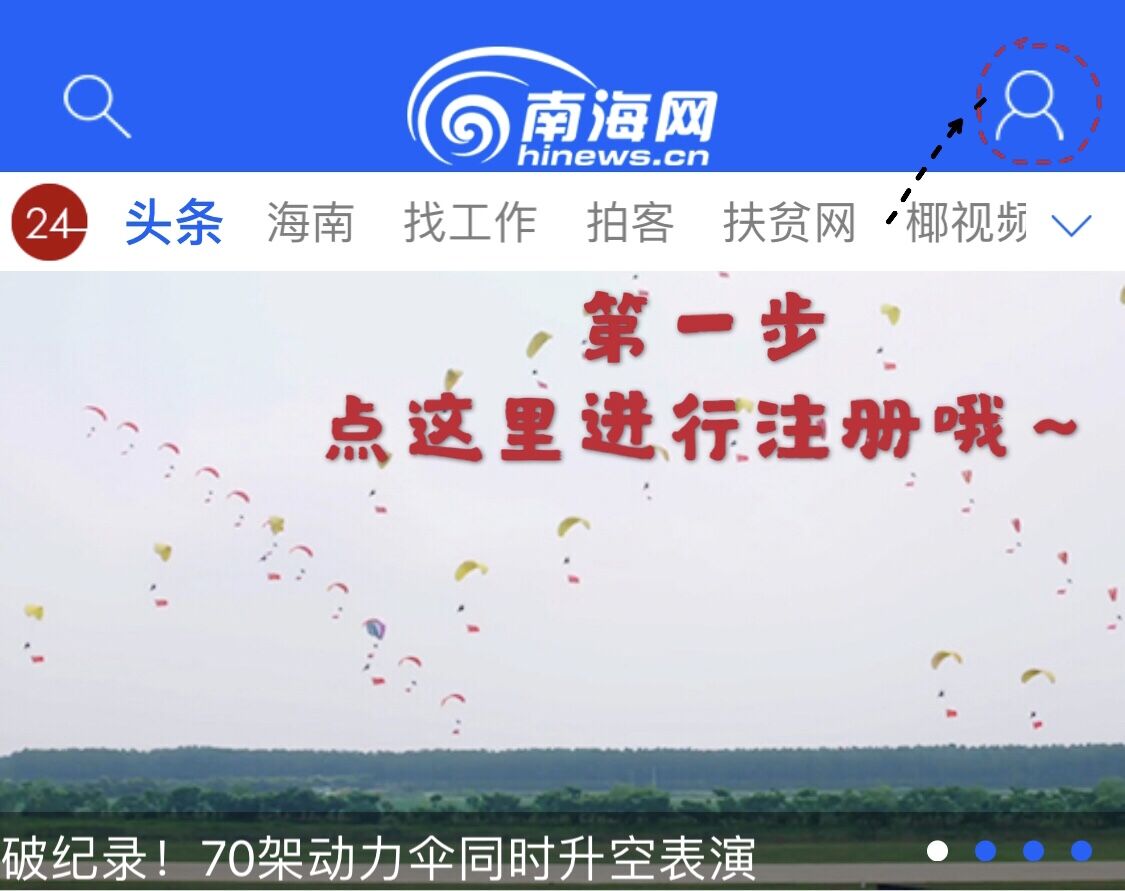 第一步:下載南海網客戶端,點擊右上角進行注冊。