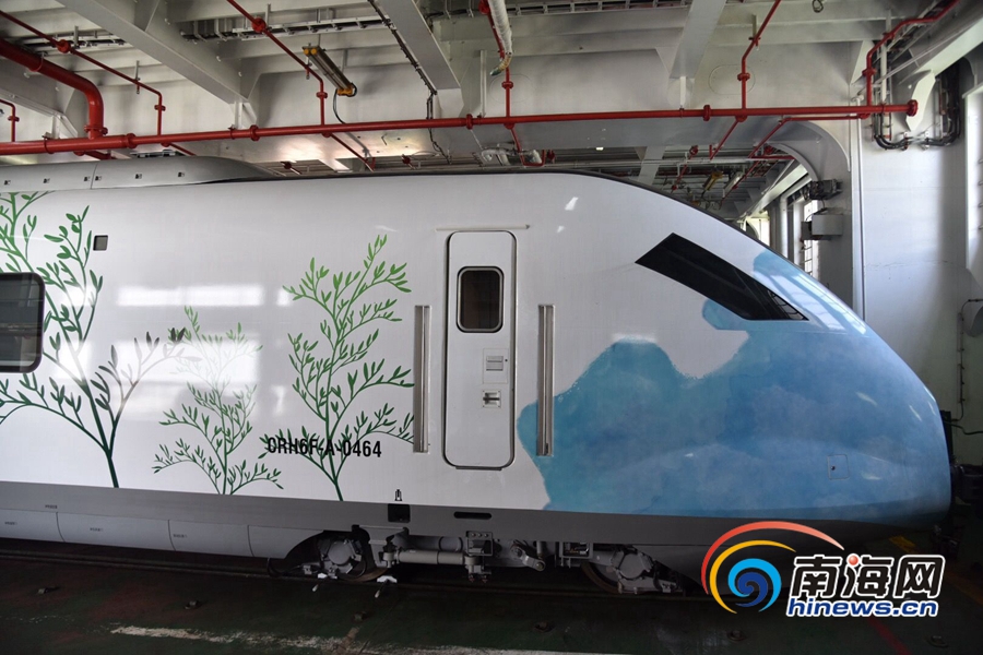 頗具海南文化元素的“海味”市郊列車。通訊員蔡晶 攝