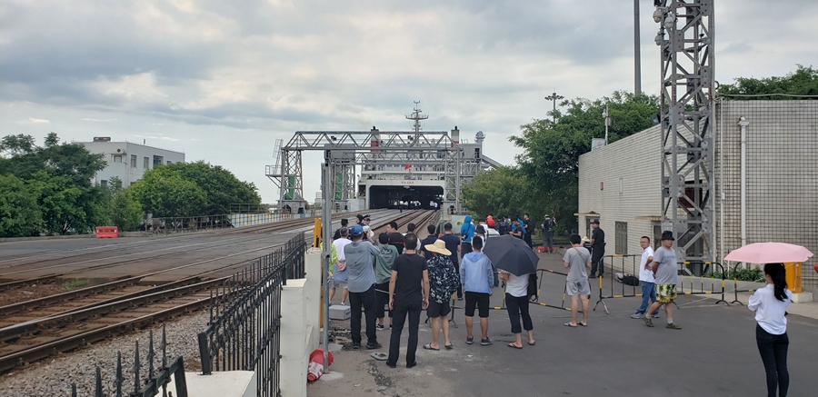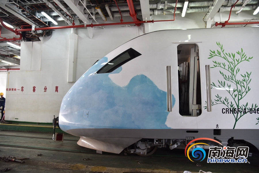 今天陸續抵達??诘乃牧惺薪剂熊嚪謩e為木棉花號、蜂虎鳥號、白鵜鶘號和水蕨菜號。市郊列車渡過瓊州海峽,駛入海南鐵路南港,約40分鐘之后抵達??诨疖囌荆瓿蓺v史性的交接。