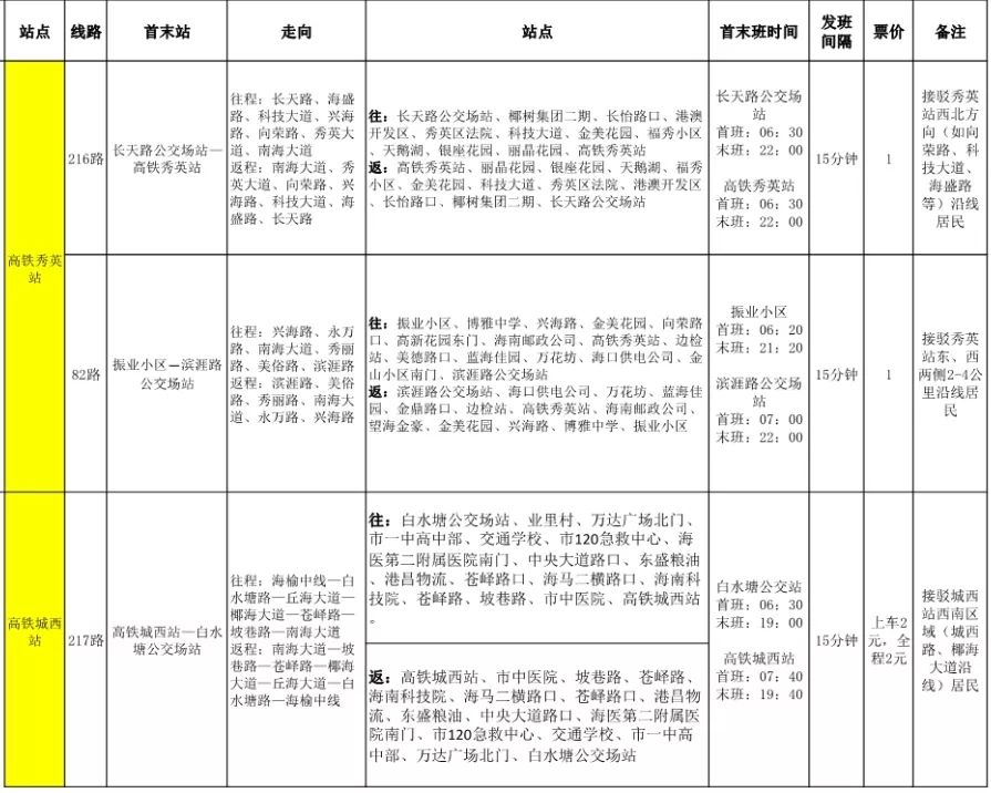 海口站至城西站票價為6元,用時28分鐘;