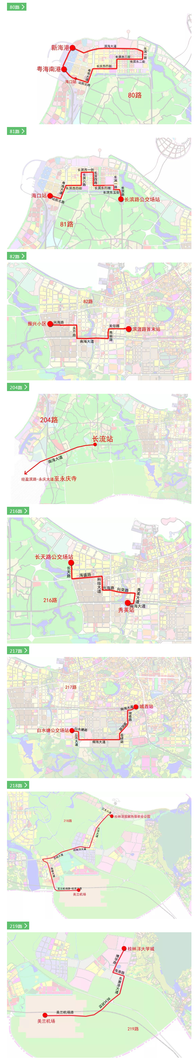 全段開設6個站點,分別為海口站、長流站、秀英站、城西站、海口東站及美蘭機場站。