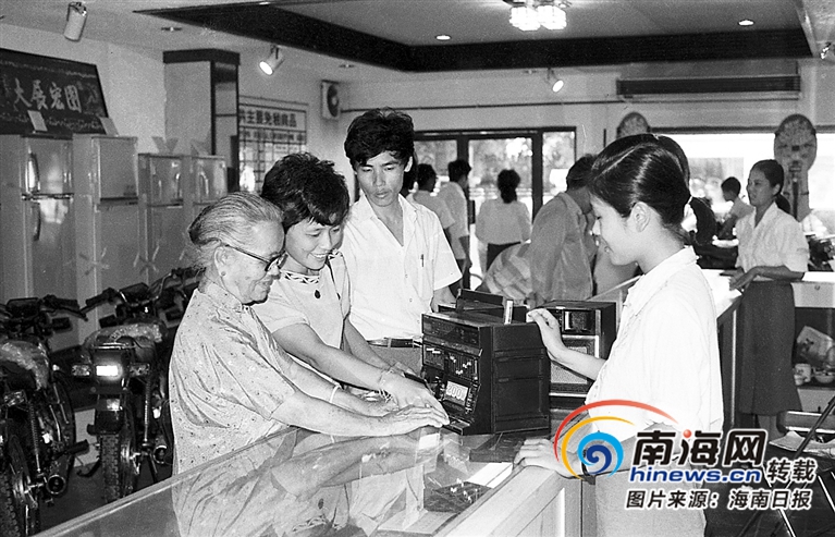 1987年,海口市華僑大廈免稅商店,華僑在選購收錄兩用機(jī)。黃一鳴 攝