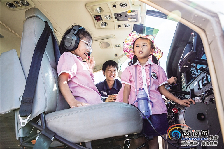 孩子們在賽斯納208D飛機駕駛艙體驗。