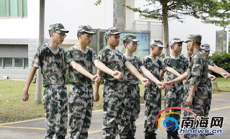 “齊步走,一二一,鍛煉身體!保衛祖國!”在海口市民兵訓練基地,53名初中生頭戴民兵帽,身穿民兵衫,身姿挺拔,揮汗如雨,口號聲響徹整個訓練場。