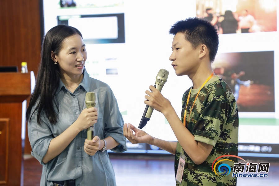 南海網資深記者在新聞知識小課堂上與參營小學員互動。南海網記者 李昊 攝