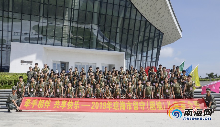 2019年瓊海市留守(困境)兒童夏令營營員在南海博物館門前合影留念。南海網記者 李昊 攝