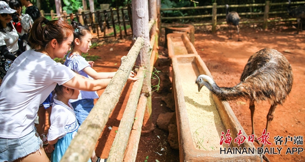 2019年7月18日,在海南熱帶野生動植物園,一家人在給鴕鳥喂食。海南日報記者張茂 攝