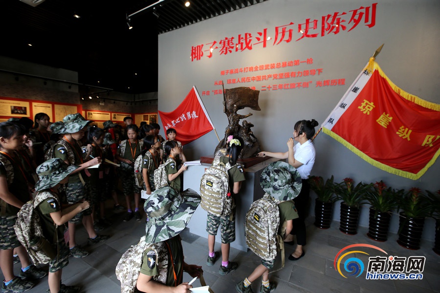 瓊海留守(困境)兒童夏令營走進椰子寨村戰斗歷史陳列館。南海網記者陳望 攝