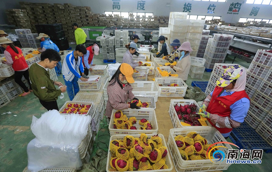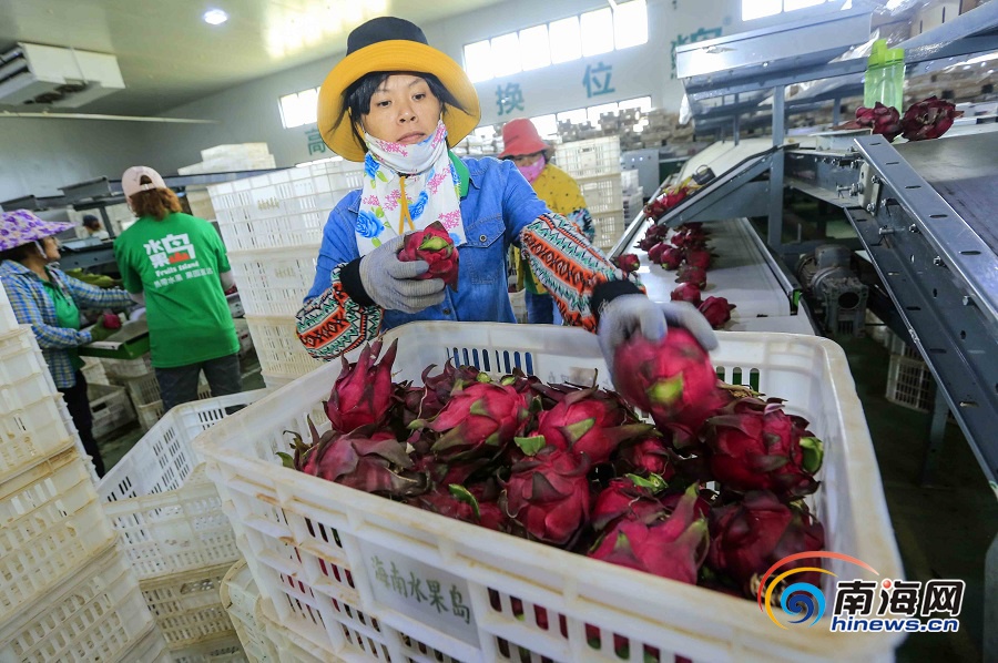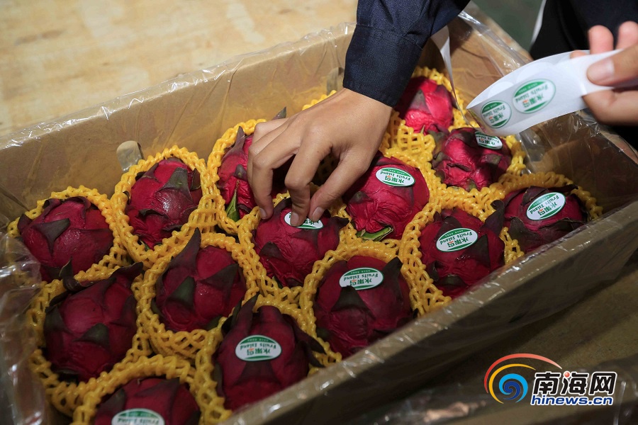 工作人員正在將火龍果打包。海報集團全媒體中心記者 陳元才 見習記者 李天平 攝