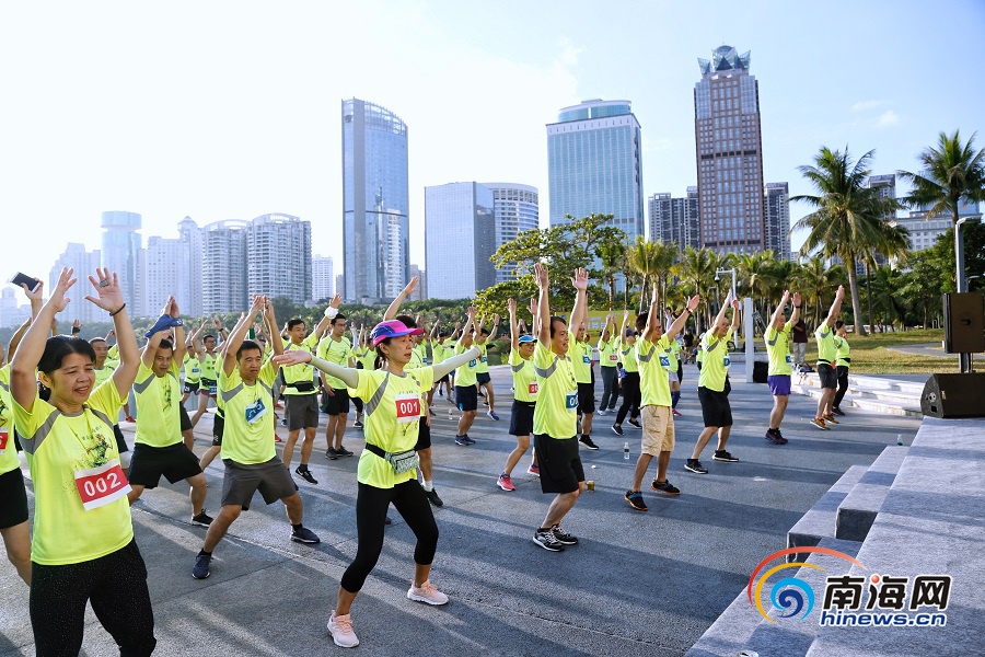 2019“海創客”馬拉松在海口舉行,參賽選手進行賽前熱身。南海網記者 姚皓 攝
