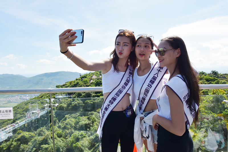 (2019年7月28日)第18屆(國際)精功模特大賽全國總決賽的60多名選手,于28日在海南三亞亞龍灣熱帶天堂森林旅游區拍攝外景。攝制組一行先后在景區熱門景點全海景玻璃棧橋、人間天堂鳥巢度假村、峭壁天池等進行取景拍攝活動。