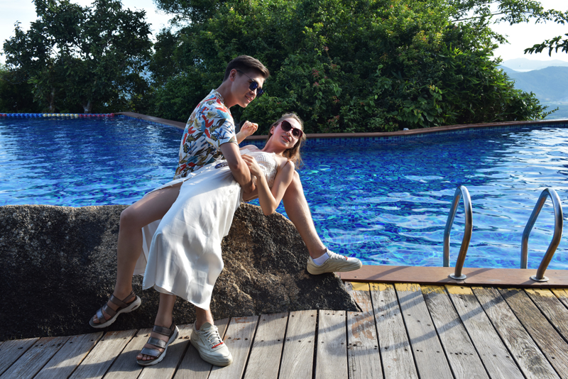 在景區熱門景點大佛石全海景玻璃棧橋上看到,一群靚妹帥哥們在全海景玻璃棧橋上激情地展示著她們曼妙的身材,眾多攝影師們不停地變換著角度進行取景拍攝,相機的快門聲不停地響起,把一幅幅精彩的瞬間定格在亞龍灣海岸雨林美景之中。靚妹們的曼妙身影,與大自然構成天人合一的美麗風景線,讓在場的游客們大飽眼福。