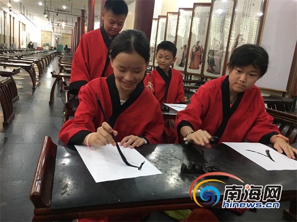 南海網(wǎng)小記者北京逐夢(mèng)研學(xué)營(yíng)營(yíng)員在國(guó)子監(jiān)行開(kāi)筆禮。南海網(wǎng)記者 林鴻羽 攝