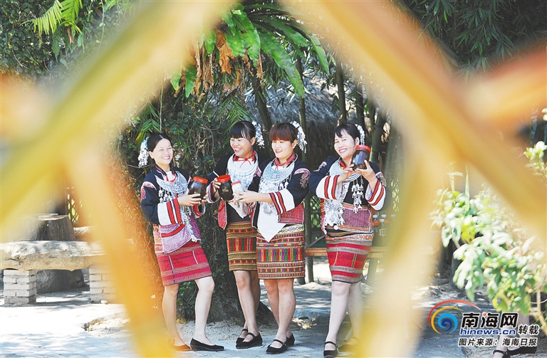 瓊中什寒村的村民捧出自釀的山蘭酒歡迎游客。海南日報記者 蘇建強 攝