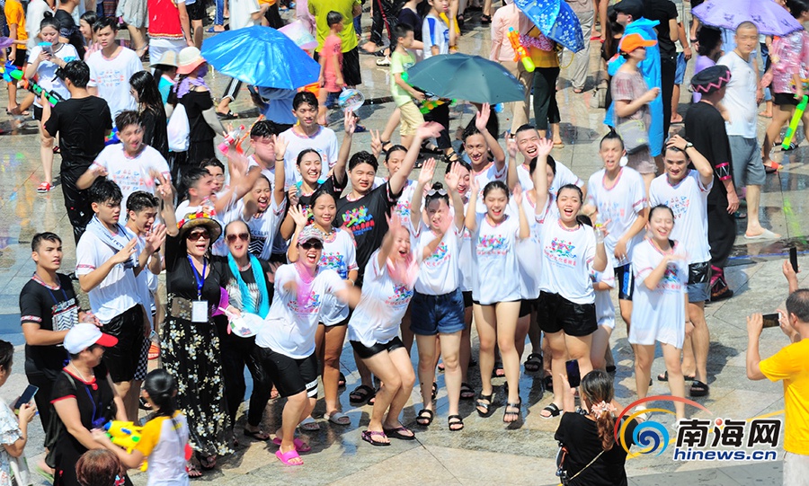 8月7日,眾多市民在保亭黎族苗族自治縣七仙廣場嬉水狂歡。南海網記者 沙曉峰 攝