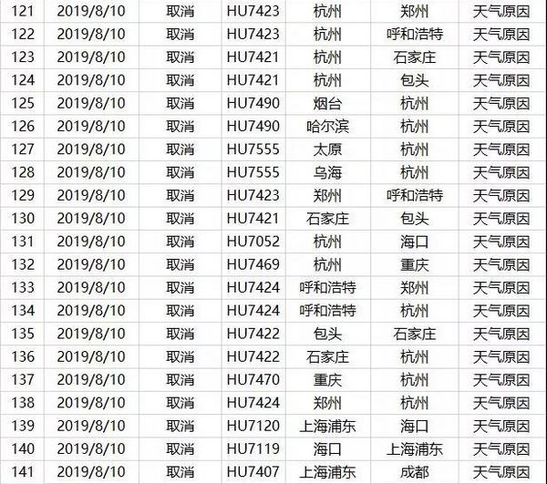 受臺風(fēng)“利奇馬”影響 海南航空取消航班141班次
