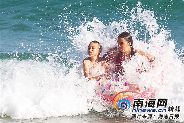 游客在三亞大東海嬉水。海南日報記者 武威 攝