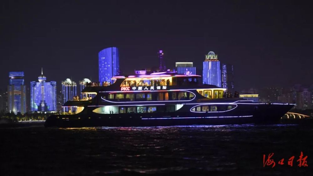 海口碧海龍騰水上巴士公司副總經理侯方圓介紹,在出海觀光的過程中穿插海南文化、城市發展等小故事講解,配以特色的互動演出,將瓊島文化與夜游活動深度融合,深受游客歡迎。
