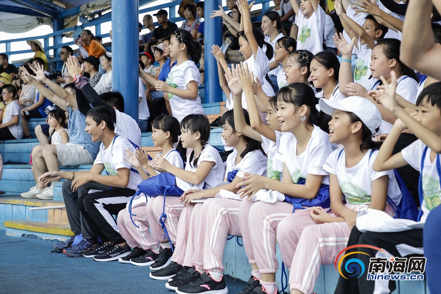 2019融創(chuàng)海南英苗夏令營的營員們在觀看海豚表演。南海網(wǎng)記者 李昊 攝