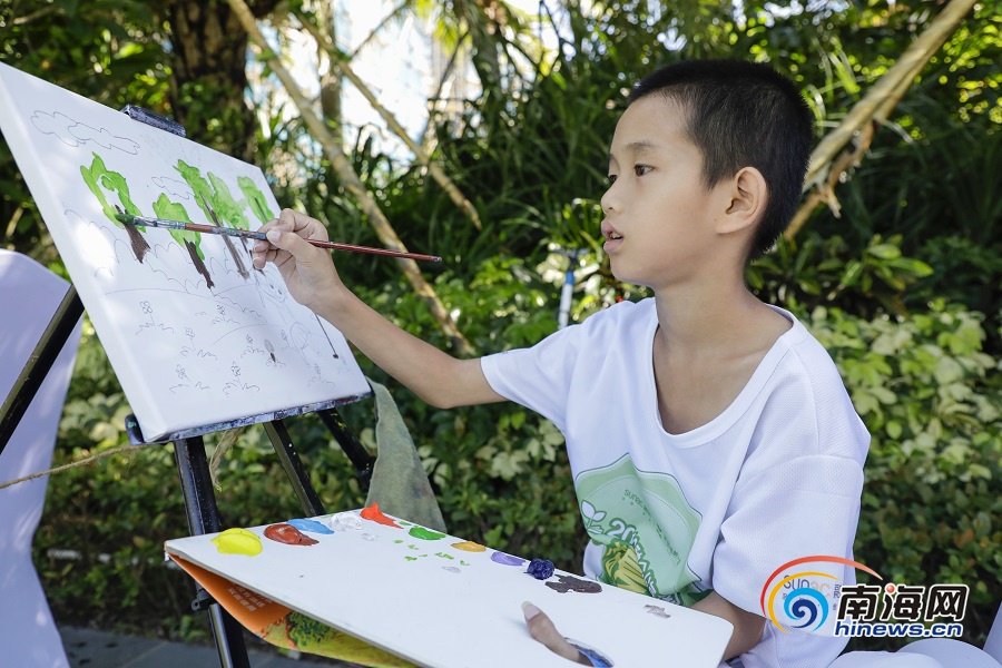 2019融創(chuàng)海南英苗夏令營的小營員在認(rèn)真地繪畫。南海網(wǎng)記者 李昊 攝