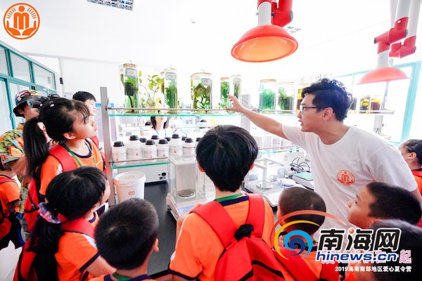 8月16日上午,2019海南南部地區困境(留守)兒童夏令營正式落下帷幕。孩子們正在實驗室查看育種過程。 三亞市民政局供圖
