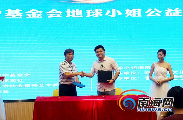 中華環境保護基金會代表與本次賽事主辦方代表共同簽訂《中華環境保護基金會地球小姐公益基金》。南海網記者 陳望 攝
