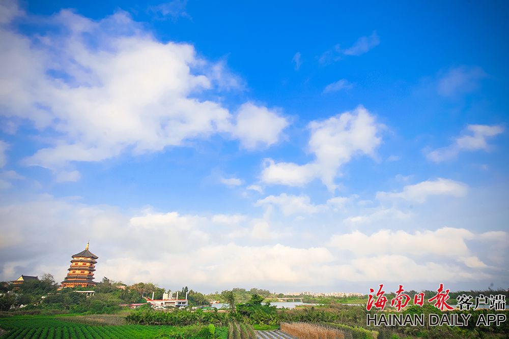 藍天白云下的博鰲禪寺格外絢麗。海南日報記者 袁琛 攝