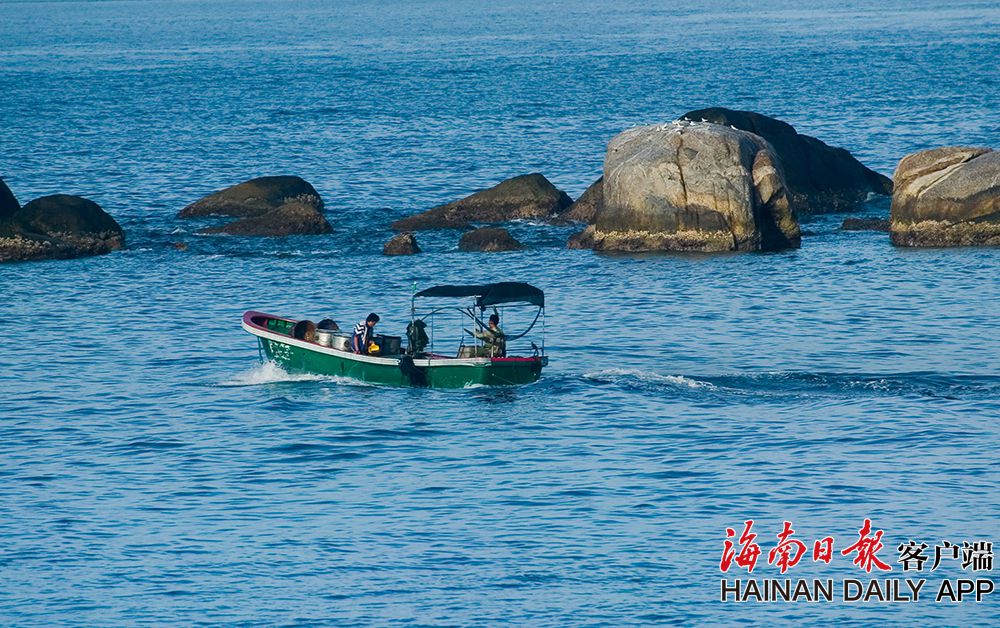 萬寧烏場海上行駛的小船。海南日報記者 李幸璜 攝