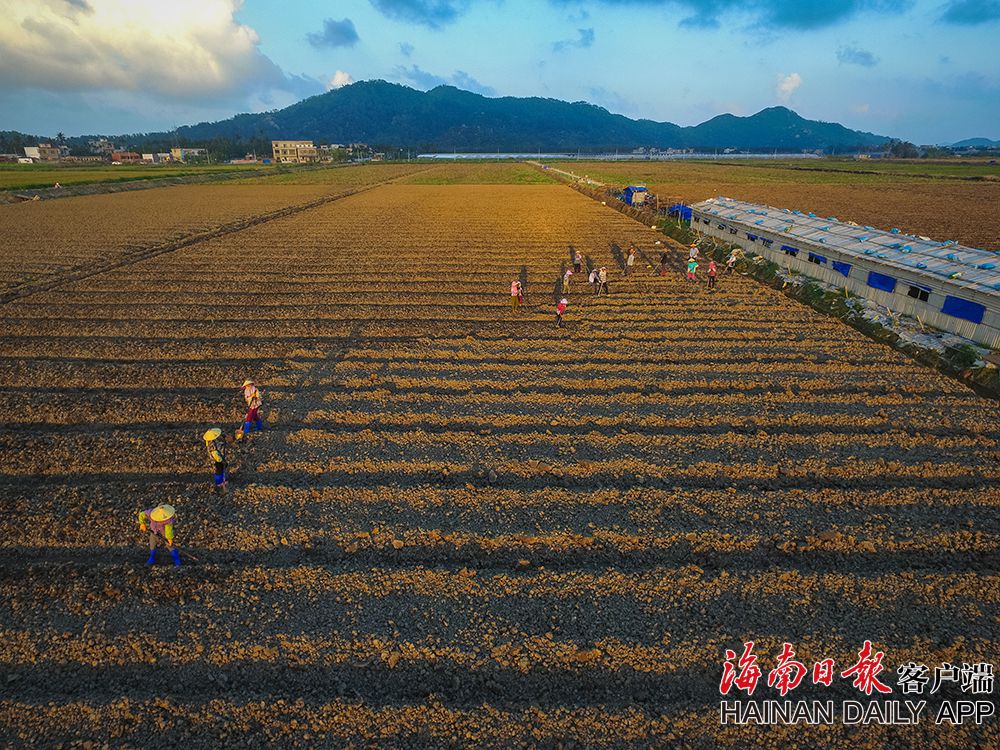 萬寧市萬城鎮萬寧永生果菜專業合作社,農戶在田間地頭耕種,拖拉在一旁將土地犁平。海南日報記者 袁琛 攝