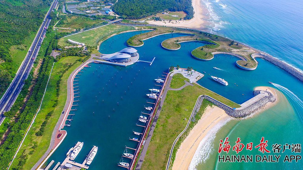 高空鳥瞰萬寧華潤石梅灣國際游艇會,濱海美景盡收眼底。海南日報記者 張茂 攝