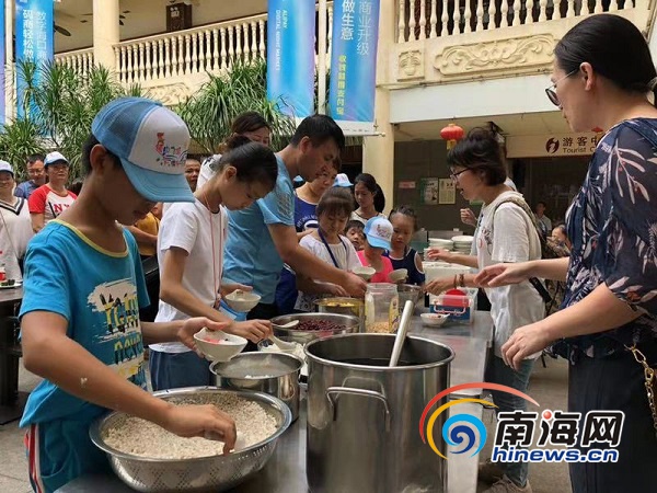 活動現(xiàn)場,老師向小學(xué)員們介紹了海口騎樓的建筑特色、海南傳統(tǒng)飲食文化、特色小吃,讓孩子們對海南飲食文化有初步的了解。隨后,在志愿者的引導(dǎo)下,小學(xué)員們了解了海南特色小吃的制作材料,并和家長一起親手制作特色小吃,在動手中體會制作美食的樂趣。