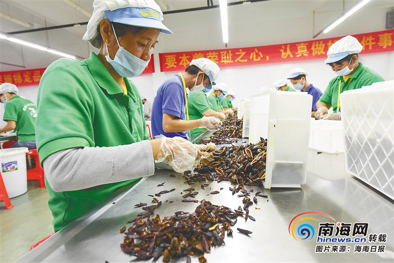 “原來打點(diǎn)零工,收入不穩(wěn)定。現(xiàn)在有了一份穩(wěn)定的收入,公司還給我買了保險(xiǎn),退休后都有保障。”家住萬寧市和樂鎮(zhèn)羅萬村的村民鐘麗群在家門口的檳榔加工廠工作。她笑著說,工廠就在家門口,“步行5分鐘左右就到家,下班后還可以回家照顧孩子。”