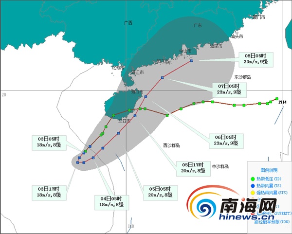 受“劍魚”影響,9月3日~6日,海南島陸地和近海將出現(xiàn)強風雨天氣。