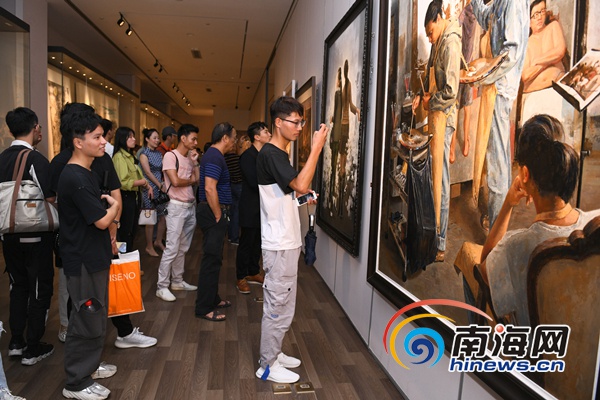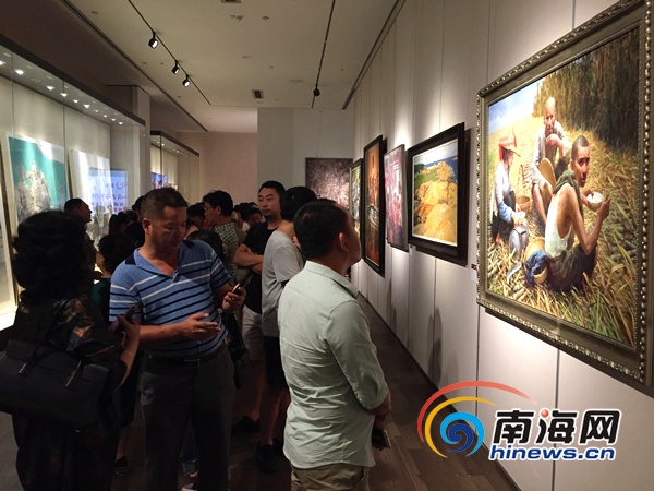 海南省優秀美術作品展吸引市民前來觀展。 南海網記者陳望 攝