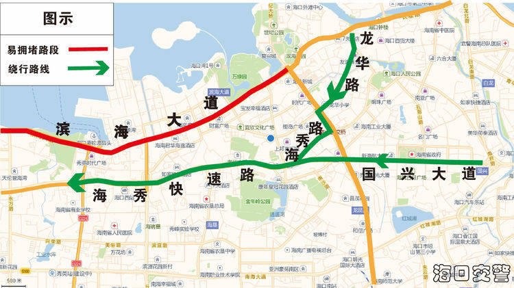 3、由東向西途經(jīng)濱海大道管制路段的車輛請從龍華路、海秀路、國興大道、海秀快速路等道路繞行;