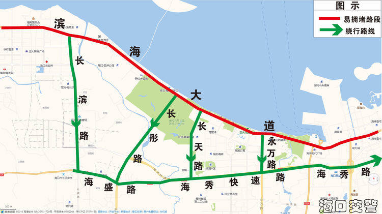 2、由西向東途經(jīng)濱海大道管制路段的車輛請從長濱路、長彤路、長天路、永萬路等道路向南分別進入海盛路、海秀路、海秀快速路等道路繞行;