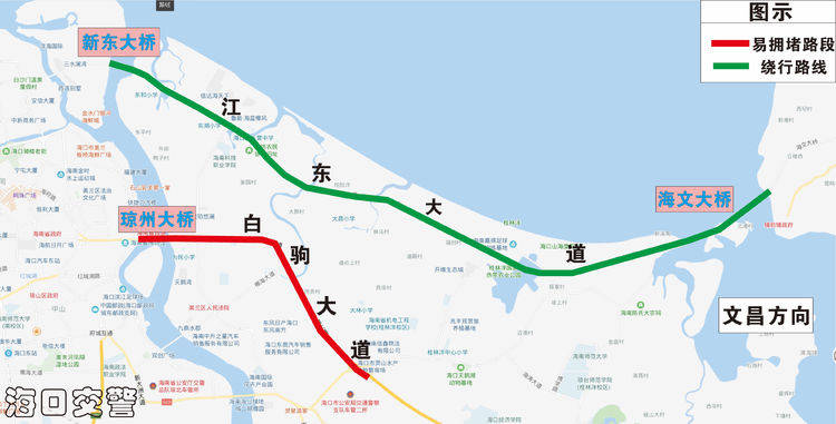 (三)經(jīng)瓊州大橋、白駒大道前往文昌的車輛集中,建議取道新東大橋、海文大橋往返,減輕國興大道、瓊州大橋交通壓力。