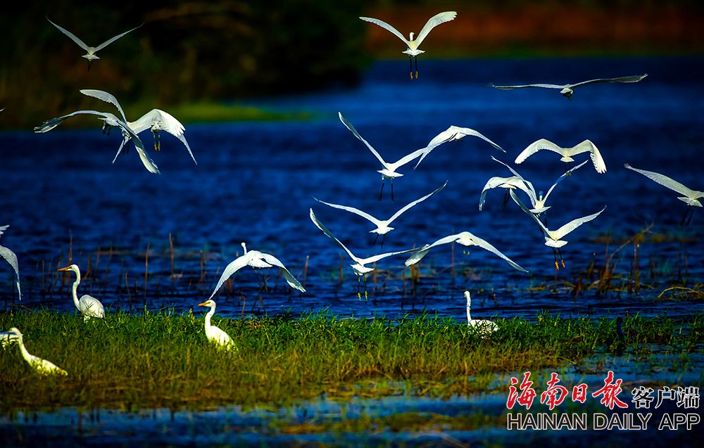 棲息在昌江海尾濕地公園的大白鷺自由翱翔。海南日報記者 蘇曉杰 攝