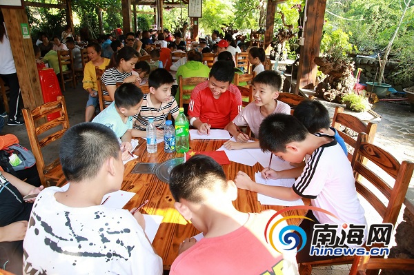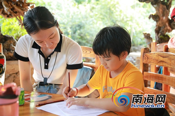 活動現場,孩子們在繪畫寫生。海口旅文局供圖