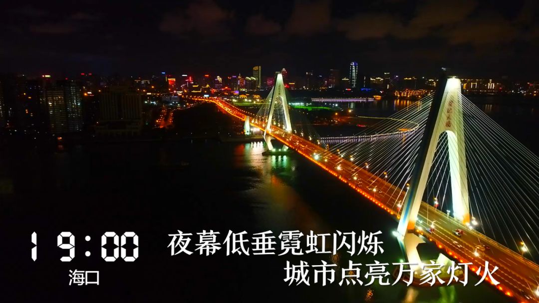 19:00 海口夜幕低垂,霓虹閃爍